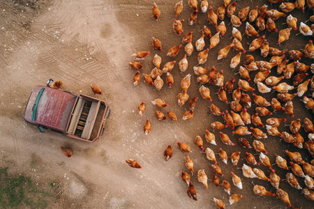 chicken farm industry ,Ariel view,snapshot asthetic. High quality photo