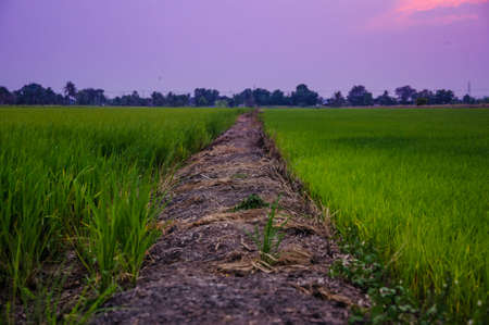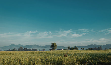 Rice field green grass blue sky cloud cloudy landscape background, Vietnam