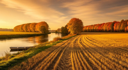 Morning sun rising over endless wheat fields in Punjab, warm golden hues and fresh air generative ai
