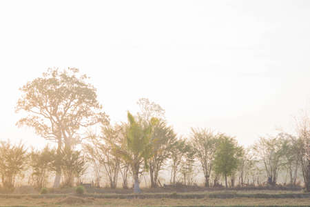 thick morning fog in the summer forest. thick morning fog in the forest at pond. Morning landscape in summer thick fog. dense fog in the morning. early morning. forest hiding in the fog.