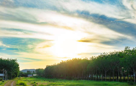 Beautiful summer landscape countryside at sunset. Path to the village. Great holiday home in the countryside. Evening