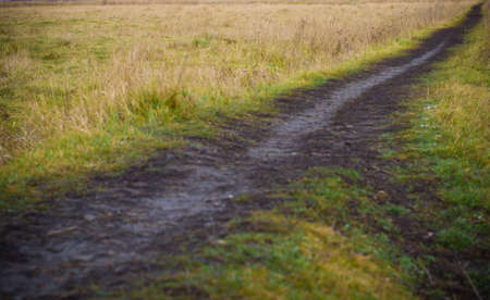 Branched country earthen road in the field