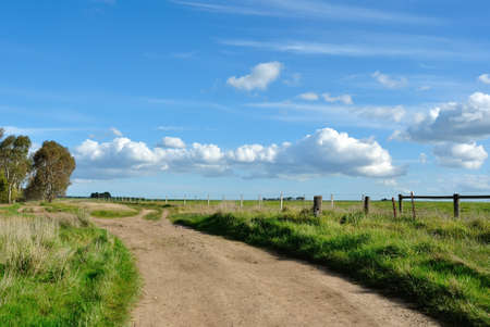 Dirt road in Australian countryside on spring sunny day