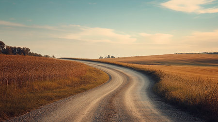 Winding country road captures the beauty of rural landscapes in bright contrast colors