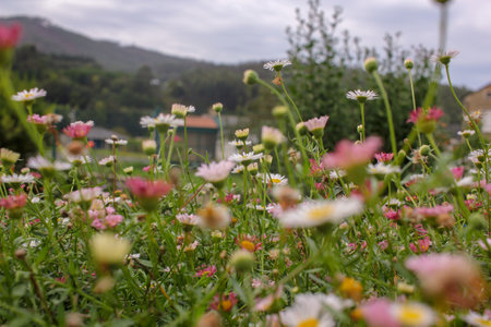 Beautiful chamomile in the garden outdoors, chamomile bloom, spring time, nature bloom.