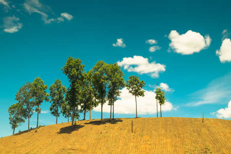 Soil mountain with less trees left in countryside of Thailand, retro color