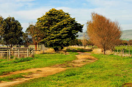 Beautiful summer landscape countryside at sunset. Path to the village. Great holiday home in the countryside. Evening