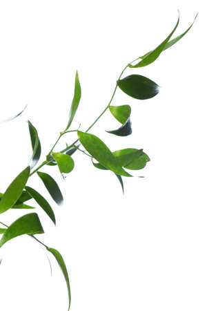 Butcher's Broom isolated on white background. Ruscus aculeatus shrub