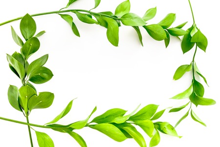 Green leaves on white background as botanical frame flatlay, eco design and spring nature flat lay