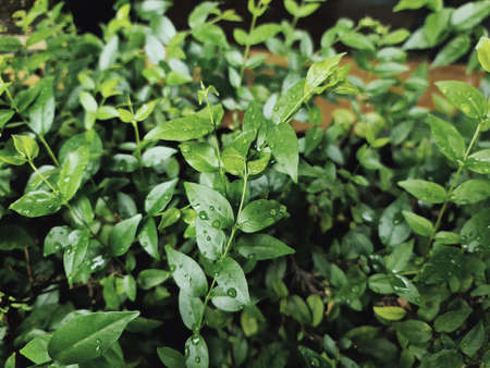 Close-up Fresh Green Plants with Rain Droplets on Leaves
