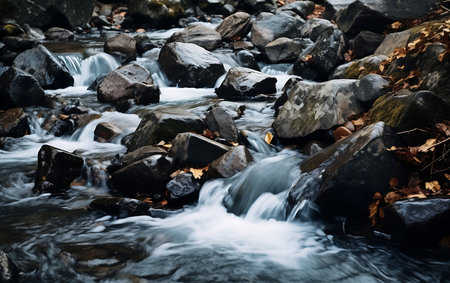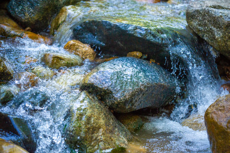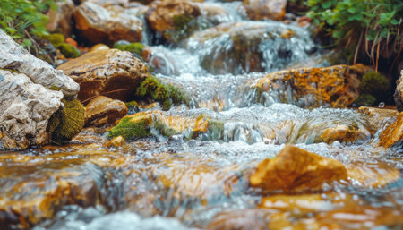 water in a mountain stream. Feel the tranquility of a mountain stream. Immerse yourself in the soothing sounds of nature. Find peace and relaxation by listening to flowing water.