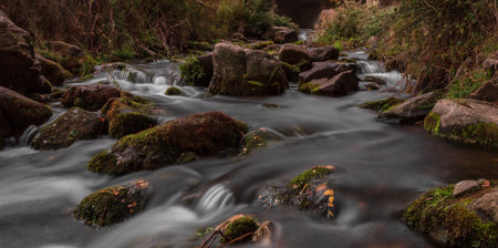 .Autumn wallpapers. Silk effect on a river with an autumn look. Long exposure.
