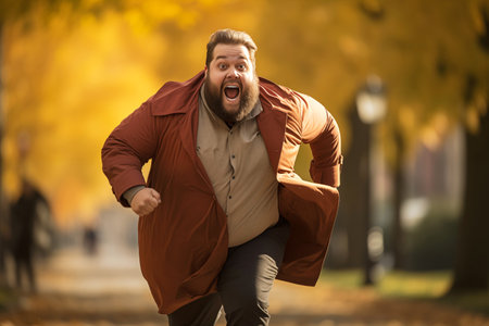 Plus-Size Man Running in the City Park
