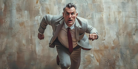 Corporate race - a businessman running, embodying concept of fast work and corporate lifestyle, illustrating demands of modern life and pursuit of business success in a dynamic world