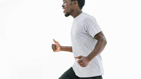 Young overweight man running outdoors. Fitness lifestyle