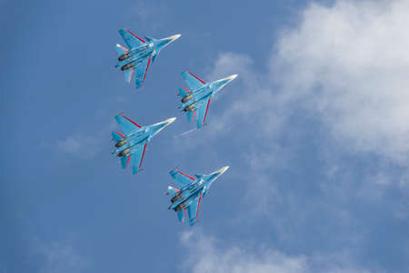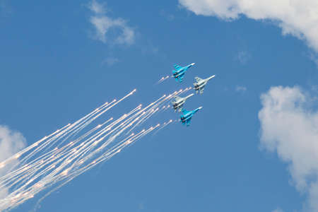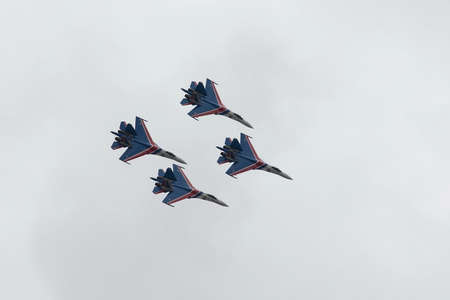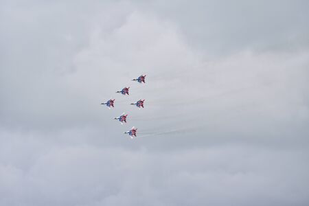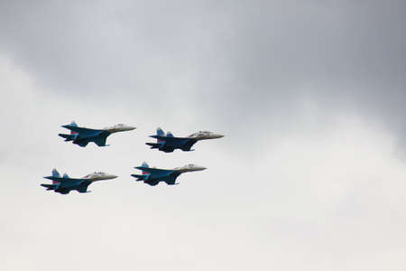 Zhukovsky, moskow region, Russia - July 23, 2017: A group of Russian military aircraft on a demonstration show MAKS-2017