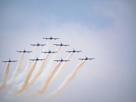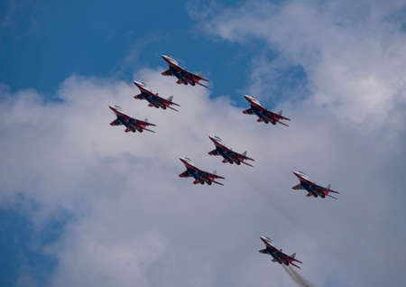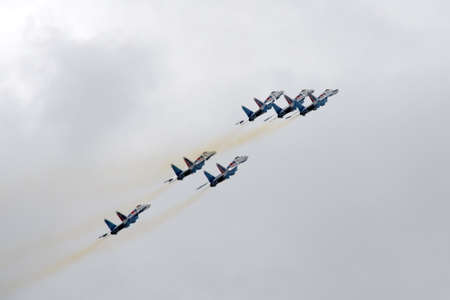 ZHUKOVSKY, RUSSIA - AUGUST 30, 2015: Aerobatic team shows demonstration flight at MAKS 2015.