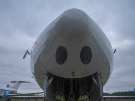 passenger plane with cheerful appearance, nose of jet looks like smiling face