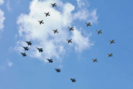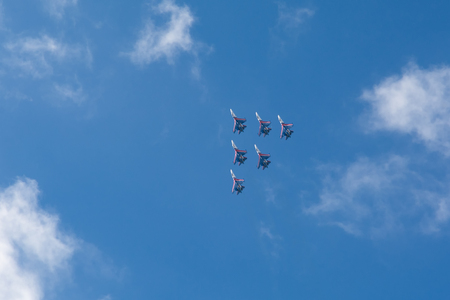 MOSCOW, RUSSIA - MAY 7, 2017: Military jets in parade rehearsal.