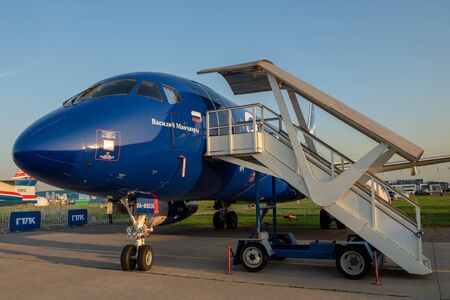 August 30, 2019. Zhukovsky, Russia. Russian short-range narrow-body passenger aircraft Sukhoi Superjet 100 Yakutia Airlines at the International Aviation and Space Salon MAKS 2019.
