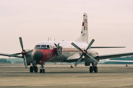 Saitama, Japan - Nov 3, 2019. NAMC YS-11FC of Air Self Defence Force (JASDF) taxiing on runway of Iruma Air Base (RJTJ) in Saitama, north of Tokyo, Japan.