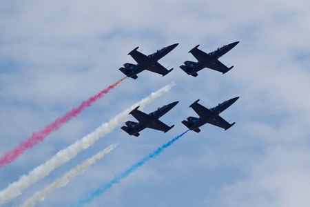 SACRAMENTO, CA - SEPT 10: Patriots Jet Team fly on L-39 Albatross aircrafts at the California Capital Airshow showing precision of flying and the highest level of pilot skills, on September 10, 2011 at Mather Airport, Sacramento, CA.