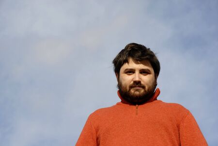 young casual man with the sky as background