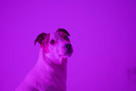 Portrait of dog shot in brightly lit room