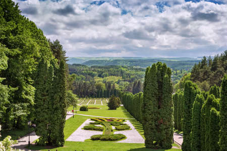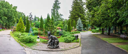 Novi Petrivtsi, Ukraine - May 27, 2015 Mezhigirya residence of ex-president of Ukraine Yanukovich. Green beautiful local park near Khonka house