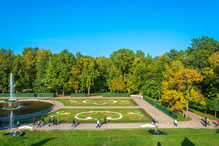 Peterhof, Russia - September 28, 2017: a Beautiful area of ??the Lower Park of Peterhof in the autumn Sunny day on 28 September 2017 in Peterhof, Russia.