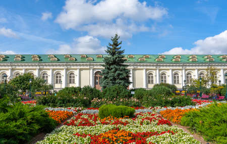 beautiful flower beds in the Aleksandrovsky garden near the Kremlin in Moscow, photo was taken on a sunny autumn day
