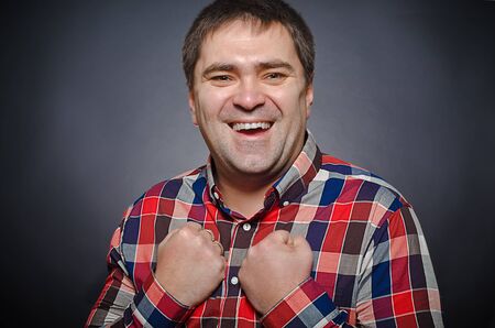 Ð ortrait of young smiling man is in a shirt in a cell