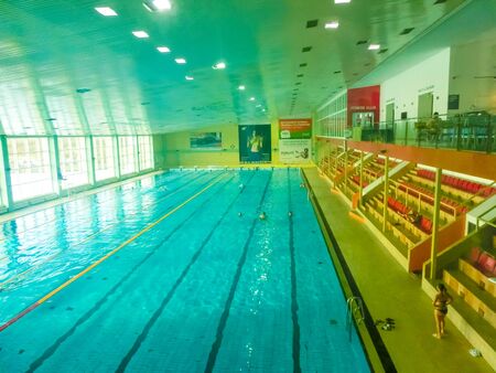 Sports pool with blue water in the hall.