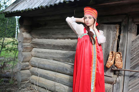 Russian folklore - Russian woman smiling standing outdoors - outdoor