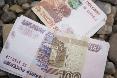 Close-up photo of Russian rubles. Finance and business concept