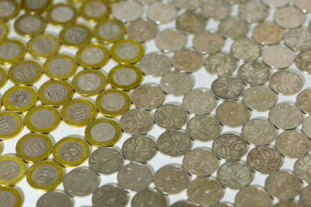 Ukrainian money. Denomination of new and withdrawal of old coins and banknotes concept