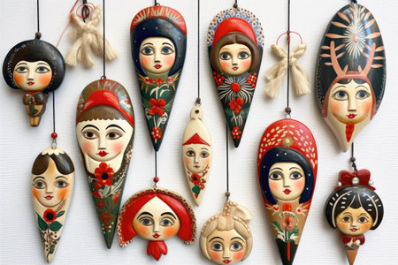collection of nostalgic handmade tree decorations, created with generative ai