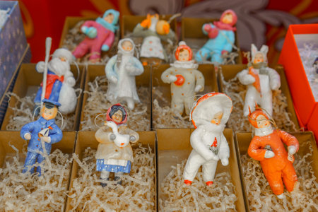 Christmas decoration for sale on advent market. Decorative miniature new year tree balls. hand made.