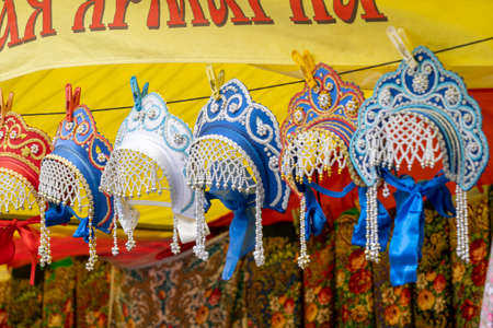 A beautiful girl in a traditional Russian national costume. The portrait symbolizes the traditions of Russia and the beauty of the Russian people.