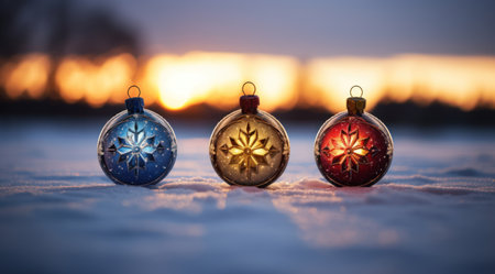 a group of ornaments in the snow