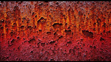 A metallic texture with rust and decay, creating an industrial and grungy feel. The rust is textured and detailed, with varying shades of orange and brown. The metal itself has a rough, aged look