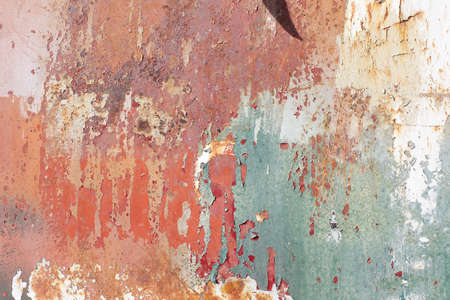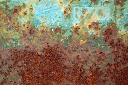 Iron, colored and rusty texture. Shabby metal surface in full screen.