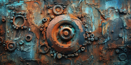 Metal with rust, vintage antique looking material, grungy background, retro style, oxidation template