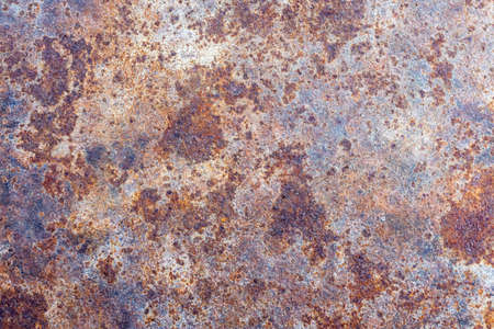 Steel textured metal sheet with strong rust. background banner close up. view from above.