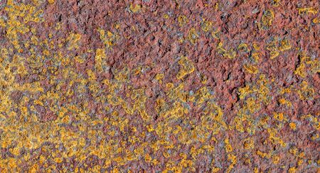 Stone textures. Dark orange banner. Colorful mountain texture. Close-up. Voluminous. Abstract rock background. Macro detail of the rock.