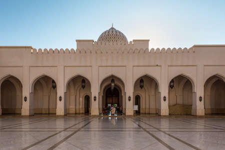 Salalah, Oman - November 12, 2017: The courtyard of the Sultan Qaboos Mosque in Salalah, Sultanate of Oman.