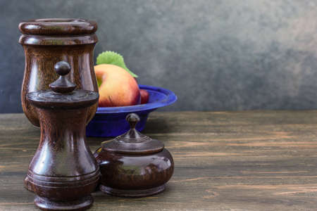 wooden tablewares on the wooden table