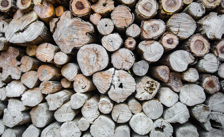 Photo Firewood stacked in a pile, ready for winter, closeup of photo