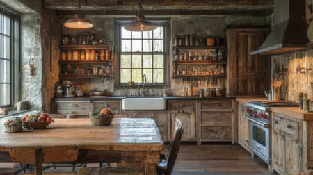 Rustic farmhouse kitchen with wooden furniture