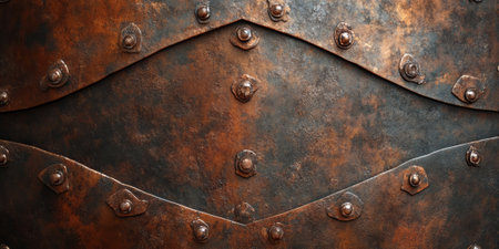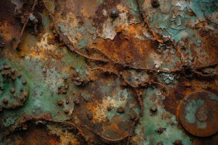 Captivating digital artwork embodying industrial vintage style through richly detailed patina layers in copper hues and subtle corrosion effects. Ideal for commercial applications like website headers, packaging designs, architectural renders, and advertising graphics. Appeals to designers seeking distinctive aged textures for modern projects. . AI-generated digital illustration. AI-generated illustration.